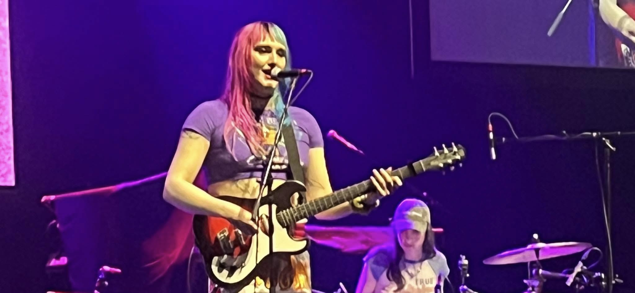 Jasmine.4.t., a group of four transsexual women from Manchester, immediately gives a solid thundering speech after the first song. They call the way they were treated by customs in the US horrible. They honor all organizations in the US that stand up for transsexuals and they call on everyone to support them. Very brave of this act to do a tour of over 20 shows in the US right now and to be so outspoken. Excellent show too.